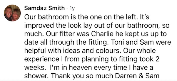 2 day turnaround* (Because we are using the footprint of your existing bath, there is minimum disruption)
